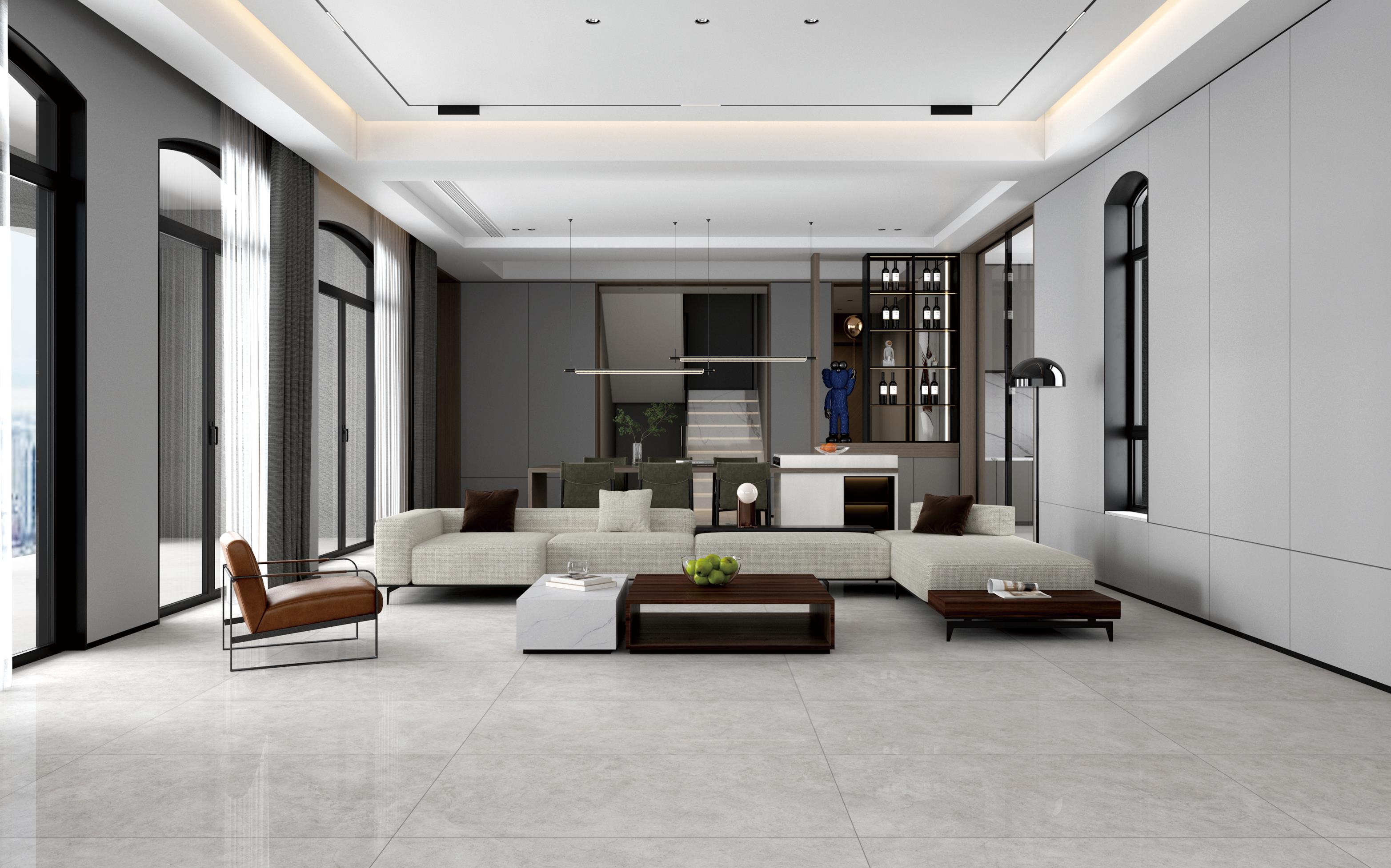清潤的光澤與巖石的肌理交織,近看細(xì)膩而精致,遠(yuǎn)看整體效果純粹優(yōu)雅,大面積鋪貼大大延伸空間縱深感。